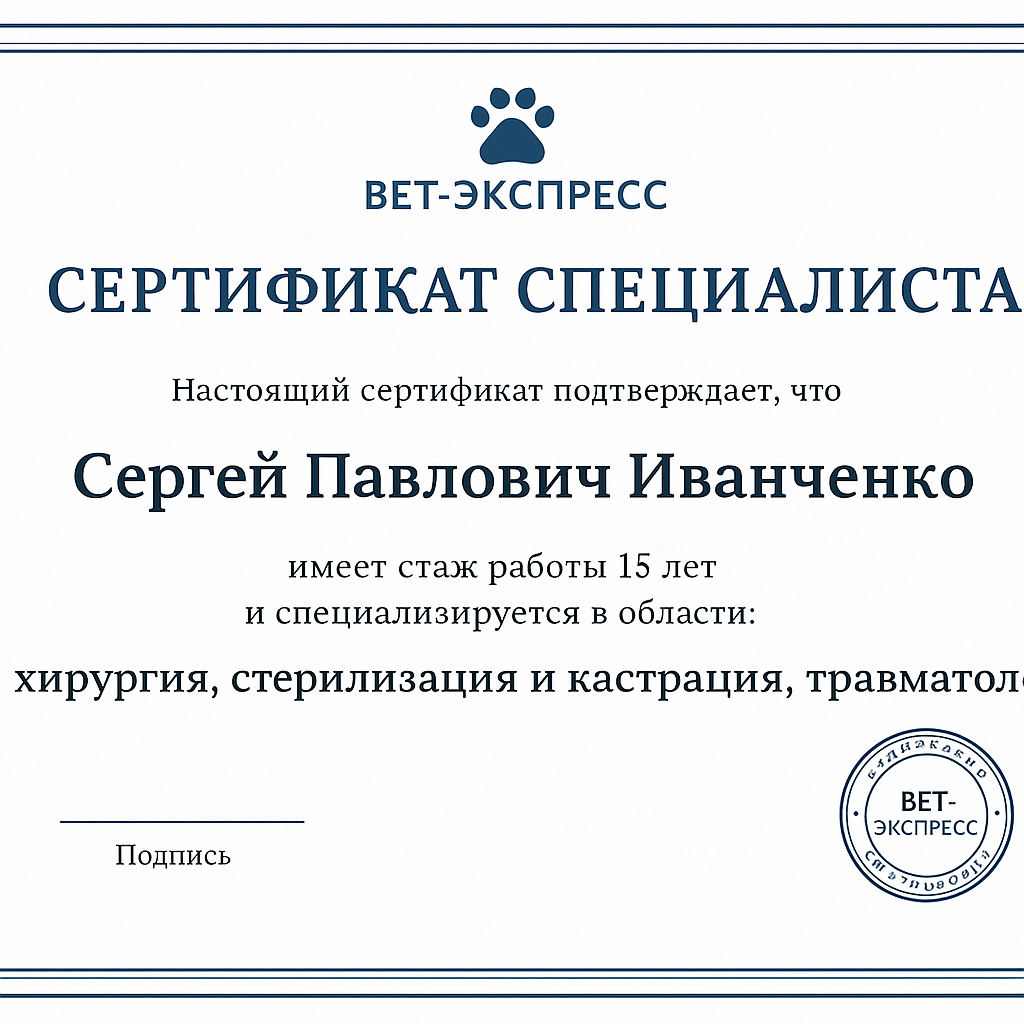Сергей Павлович всегда ориентирован на благополучие животных, использует щадящие и современные методы лечения, уделяет внимание безопасности и быстрому восстановлению пациентов.